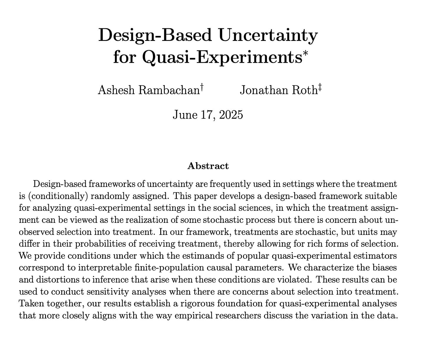 Rambachan and Roth had a JASA ;final yr on design primarily based uncertainty with quasi experimental work.