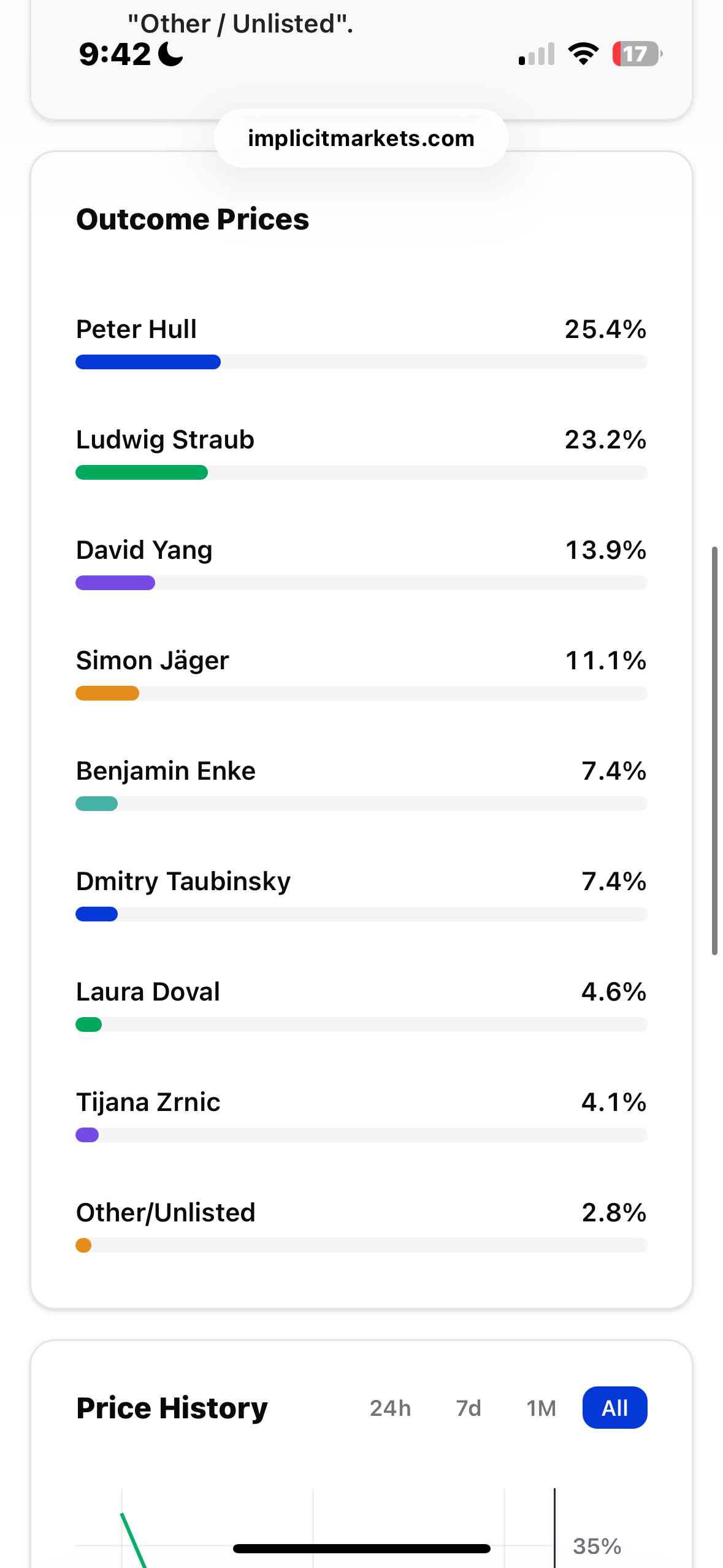 Traditionally, the John Bates Clark award was given each different 12 months to “that American economist below the age of forty who’s judged to have made probably the most vital contribution to financial thought and data.” Somebody despatched me this prediction of who may win this 12 months. And I used to be playfully excited to see one in all my favourite economists below 40, or alive, Peter Hull, presently capping it out with 25.4%.