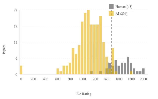 And bear in mind — that is the worst model of those instruments we’ll ever use. Challenge APE’s most up-to-date cohort has already improved from a 4.7% to 7.6% win fee in these head-to-head competitions. The standard distribution is altering with scale and it’s partly drifting rightward. As soon as AI papers begin changing into aggressive not simply on the area journal stage however at basic curiosity, that’s when the arms race intensifies essentially the most, as a result of the automated submissions aren’t simply filling the left tail anymore. They’re competing for a similar slots at the most effective journals, which turns into simpler to justify since presumably these are crucial papers scientifically too.