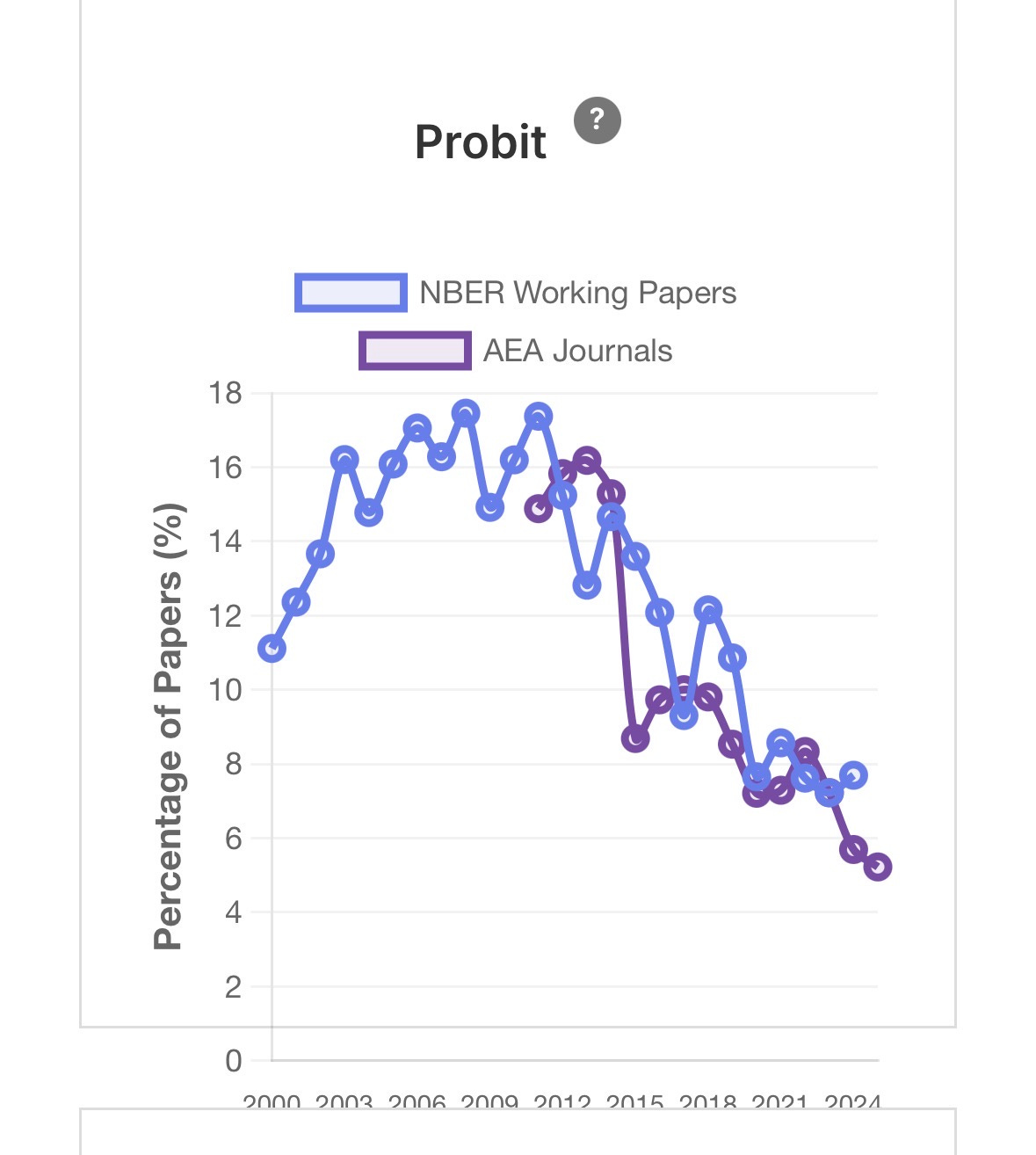 Probit is dying. From Paul Goldsmith-Pinkham.