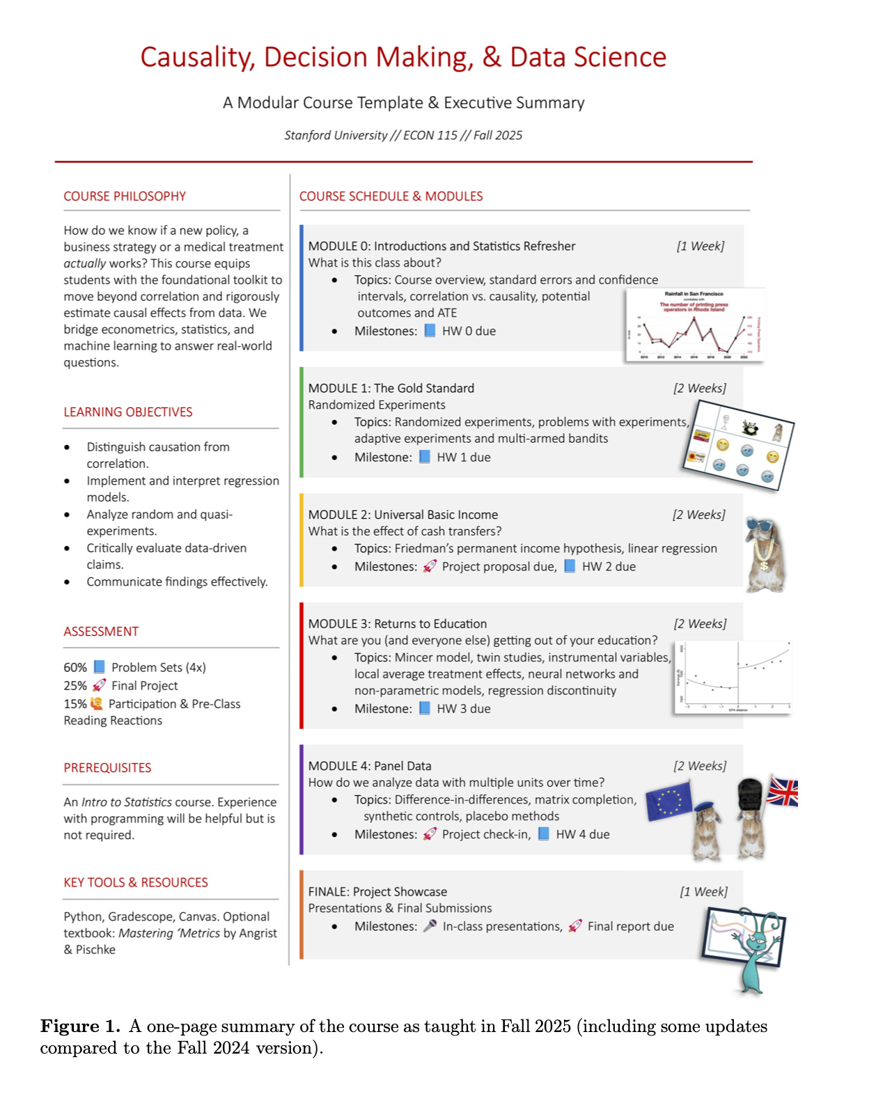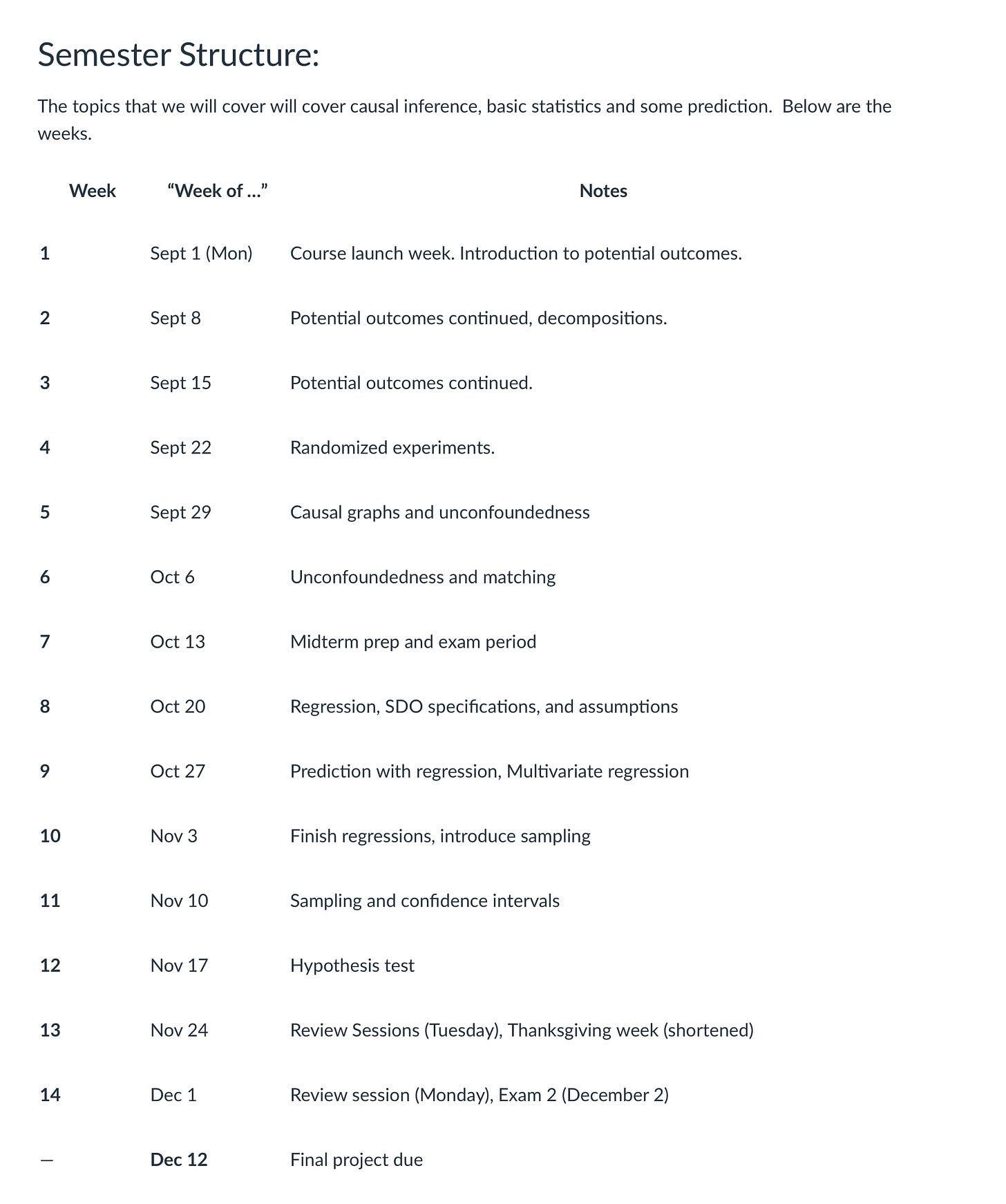 The course is titled “An Undergraduate Course in Causal Inference”. They wrote a paper simply accepted at Harvard Information Science Assessment which you will discover ungated model right here. And right here’s an image of the manager abstract of the course: