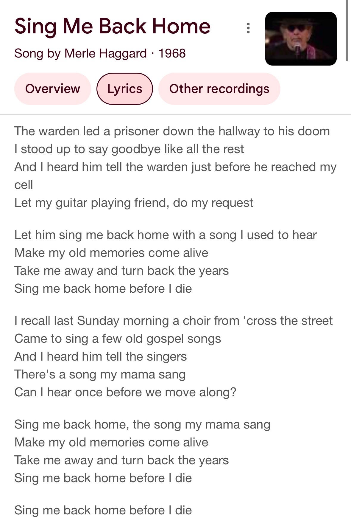 However again to music — dad didn’t like these eras. He additionally didn’t appear to essentially like Johnny Money, chopping off actually all the roads to him that I had quick access to. He beloved the outlaw nation musicians like Waylon Jennings, Merle Haggard, Willie Nelson, and a few others who I actually didn’t know very properly. After I acquired the decision that he died this morning at 9:45am CST, I had actually simply pulled up a tune by Merle Haggard that I used to be planning on studying for my speech at his funeral. It’s known as “Sing Me Again Residence”, and whereas I’m not certain it was one among his favourite, I determine he probably knew it by coronary heart. He knew all the pieces, it appeared like, by coronary heart. Not like me, he had a reminiscence like a metal entice, by no means appeared to overlook something, and so I’m certain if I might’ve learn it to him, he would’ve identified it by coronary heart too if he might’ve heard me, which he wouldn’t have been capable of.