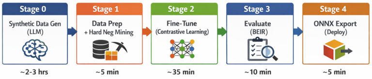 • Exploring chunk-aware coaching: utilizing actual doc chunks from a manufacturing vector database because the retrieval corpus, producing questions in opposition to these chunks through the LLM, and mapping every query to its optimistic chunk and hard-negative chunks — coaching the mannequin on the identical knowledge distribution it will encounter in manufacturing, the place solutions could also be buried in longer textual content and chunking methods will differ