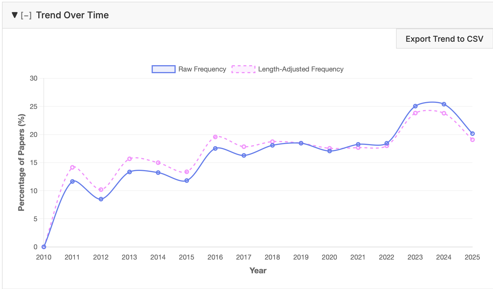 Distinction-in-differences is without doubt one of the hottest econometric approaches to causal inference within the social sciences. It has been for some time, and has been more and more over the past 5 years and now accounts for about 25% of all papers printed in prime economics journals (the drop in 2025 being that 2025 isn’t over and this was scraped earlier within the 12 months by Paul Goldsmith-Pinkham who made this superior software).